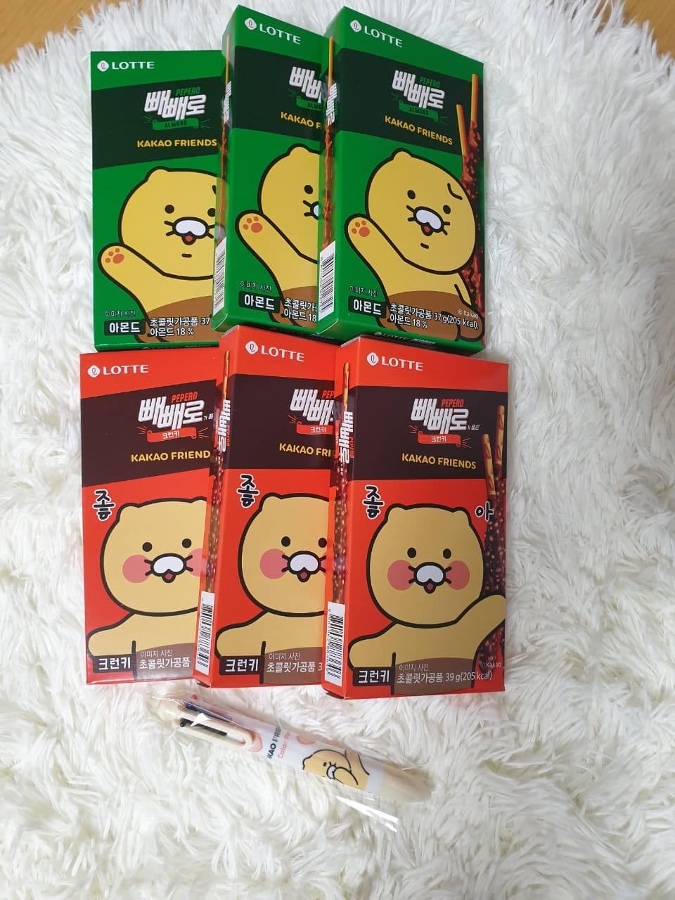 춘식이 빼빼로 세트에는 크런키 빼빼로 3개와 아몬드 빼빼로 3개가 들어있었고, 야부에게는 빼빼로 데이여서 널 위해 사 왔다며 한껏 으스대다가 춘식이 볼펜은 나에게 달라며 비굴거렸다... 헿..
