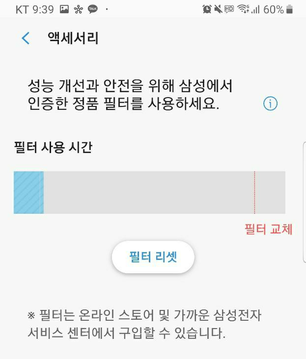 그리고 대망의 필터 확인을 위하여 스마트 싱스에 연결하였고...
