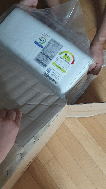 27평형이여서 그런지 밑에 바퀴가 있어 이동이 편리하였고, 리퍼 제품이지만 전반적으로 깨끗하게 닦여서 도착하였다.